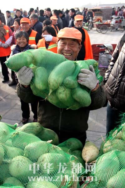 當(dāng)天上午,淮陽(yáng)縣太昊陵廣場(chǎng)人頭攢動(dòng),1000余名貧困家庭代表早早地來(lái)到現(xiàn)場(chǎng)等候。9時(shí)許,“愛心蘿卜”開始免費(fèi)發(fā)放。僅一上午時(shí)間,20萬(wàn)斤蘿卜就被認(rèn)領(lǐng)一空。
