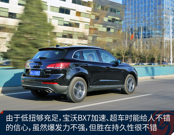 動(dòng)力方面寶沃BX7擁有一臺(tái)2.0T渦輪增壓直噴發(fā)動(dòng)機(jī),目前在售的均為高功率版本,擁有165千瓦的最大功率和300牛頓·米的峰值扭矩,這臺(tái)2.0T發(fā)動(dòng)機(jī)是寶沃聯(lián)合德國FEV公司共同研發(fā),最大功率數(shù)據(jù)可觀,但峰值扭矩因?yàn)樽兯倨髂艹惺茏畲笈ぞ氐南拗票辉O(shè)定得略微保守,可見這還并非這臺(tái)發(fā)動(dòng)機(jī)的全部潛力。令人欣慰的是,這臺(tái)2.0T發(fā)動(dòng)機(jī)峰值扭矩在1500rpm即可輸出,這個(gè)優(yōu)點(diǎn)讓它在低轉(zhuǎn)速區(qū)即可有充沛的牽引力,駕駛起來顯得更加輕松,超車的時(shí)候信心十足。