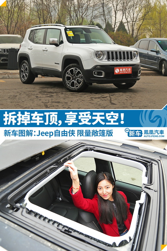 ?在買車前,你往往會有這些尷尬的情況,就是有個性的車買不起,買得起的長得太平常,長得不平常的家里人覺得太不實際,滿足實際需要的你自己不喜歡,買自己喜歡的車型往往是些不著邊際的車,挑一款樣子、實用而且全家都滿意的車怎么就那么費(fèi)勁?當(dāng)你最后不得不抓鬮,讓上帝幫你隨緣去決定買哪款車時,不妨輕輕的瞄一眼Jeep目前最小的SUV車型-自由俠,這款集合Jeep車型最多經(jīng)典元素的車型足夠拉風(fēng),配以相當(dāng)專業(yè)的四驅(qū)系統(tǒng)能讓它的實用性猛漲,而且最重要的是最近上市了2017款的自由俠車型推出了敞篷版車型,說白了它有一個可拆卸的車頂,這樣的車是足夠拉風(fēng)、足夠吸引人了吧?