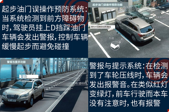 EyeSight駕駛輔助系統(tǒng)是避免事故發(fā)生,此次在中國(guó)市場(chǎng)亮相是它的第三代產(chǎn)品,其主要亮點(diǎn)是通過(guò)兩個(gè)模擬人眼的立體攝像頭,來(lái)監(jiān)控距離車輛前方100米以內(nèi),高度在1米以上的人、車輛和物體,以減少傷害為目的的駕駛輔助系統(tǒng);除了距離以外,還可以對(duì)方向、高度大小等指標(biāo)進(jìn)行識(shí)別。它的主要功能分為四大類,分別是防碰撞制動(dòng)系統(tǒng)(PCB)、車速自適應(yīng)巡航控制系統(tǒng)(ACC)、起步油門誤操作預(yù)防系統(tǒng)和警報(bào)與提示系統(tǒng)。