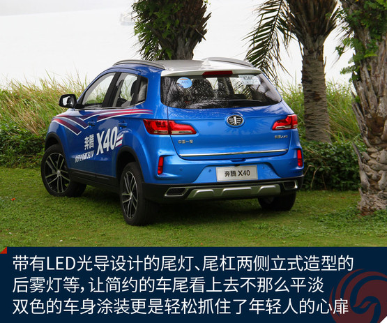 奔騰X40定位于一款小型SUV,雖然家族式的六邊形格柵線條依然有點(diǎn)生硬,但頗具馬自達(dá)神韻的大燈、帶有京劇臉譜線條的前臉、時(shí)尚前衛(wèi)的雙色車(chē)身等,都讓它向目前大家更看重的顏值路線更近一步。能在第一眼抓住年輕人的心,這款車(chē)就成功了一半。