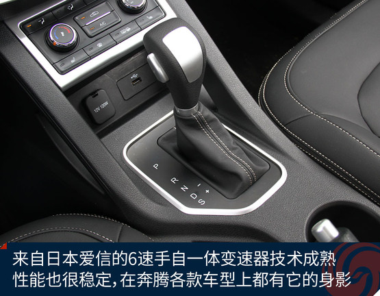傳動(dòng)系統(tǒng)匹配的是日本愛(ài)信第三代6速手自一體變速器在奔騰各款車(chē)型中都有所應(yīng)用,響應(yīng)速度、換擋機(jī)制等方面的表現(xiàn)都比較成熟、均衡。