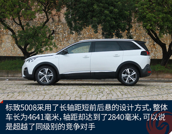 和市面上的一些7座SUV不同,標(biāo)致5008采用了長(zhǎng)軸距短前后懸的設(shè)計(jì)方式,這樣的設(shè)計(jì)更多的出現(xiàn)在運(yùn)動(dòng)派車型上。標(biāo)致5008的整體車長(zhǎng)為4641毫米,軸距卻達(dá)到了2840毫米,可以說(shuō)是超越了同級(jí)別的競(jìng)爭(zhēng)對(duì)手。