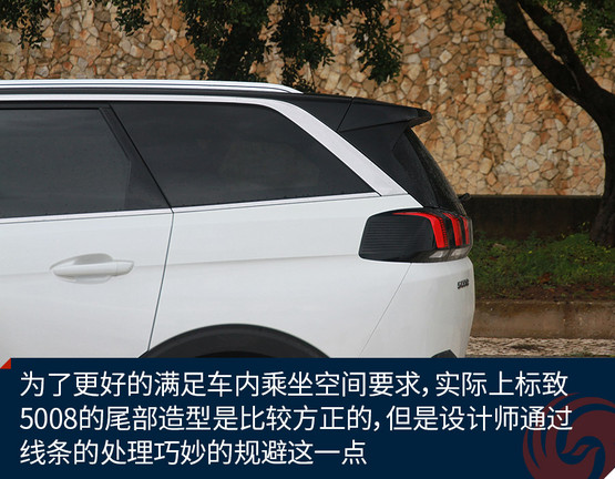 為了更好的滿足車內(nèi)乘坐空間要求,實(shí)際上標(biāo)致5008的尾部造型是比較方正的,但是設(shè)計(jì)師通過(guò)線條的處理巧妙的規(guī)避這一點(diǎn)。側(cè)窗鍍鉻裝飾在尾部快速下滑與尾燈相連接,上面后窗的部分則用黑色處理,使得標(biāo)致5008的視覺效果仍然充滿動(dòng)感,同時(shí)還保留了第三排空間的實(shí)用性。