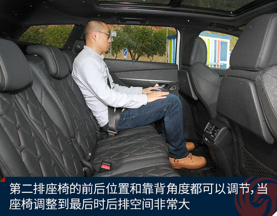 第二排座椅的前后位置和靠背角度都可以調(diào)節(jié),當(dāng)座椅調(diào)整到最后時(shí)后排空間非常大,同時(shí)標(biāo)致5008還為第二排乘客提供了獨(dú)立空調(diào)、小桌板和車頂上的全景天窗,所以當(dāng)?shù)谌挪恍枰藭r(shí),標(biāo)致5008的第二排是一個(gè)乘客休息娛樂(lè)的好地方。