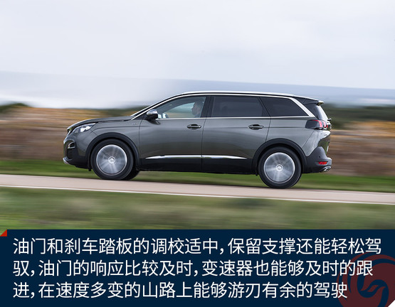 油門和剎車踏板的調(diào)校也如是,踏板腳感適中,保留支撐還能輕松駕馭,并不像多數(shù)歐系車那樣沉重。油門的響應(yīng)比較及時(shí),變速器也能夠及時(shí)的跟進(jìn),在速度多變的山路上能夠游刃有余的駕駛。唯一的問(wèn)題是低功率的1.6T在動(dòng)力上沒有突出的表現(xiàn),尤其在上坡時(shí),加速會(huì)稍感吃力,但是想到這事一款家用SUV,這也就不是問(wèn)題了。而且標(biāo)致5008在國(guó)內(nèi)的主力車型將會(huì)是1.8T版本,動(dòng)力還會(huì)再上一個(gè)臺(tái)階。