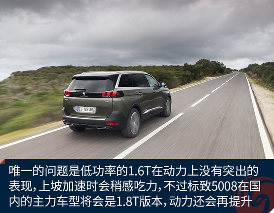 最后我們來(lái)說(shuō)一說(shuō)標(biāo)致5008的駕駛感受。首先是動(dòng)力配備情況,在歐洲市場(chǎng),標(biāo)致5008提供了1.2T和1.6T兩款汽油發(fā)動(dòng)機(jī)和2.0T柴油發(fā)動(dòng)機(jī),來(lái)到國(guó)內(nèi)后將會(huì)提供1.6T和1.8T兩款汽油發(fā)動(dòng)機(jī),并匹配6速手自一體變速器。