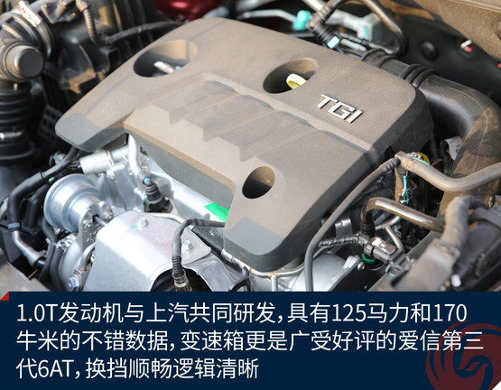 眼前這臺(tái)名爵ZS是1.0T 6AT車型,1.0T發(fā)動(dòng)機(jī)與上汽共同研發(fā),具有125馬力和170牛米的不錯(cuò)數(shù)據(jù),變速箱更是廣受好評(píng)的愛信第三代6AT,換擋順暢邏輯清晰。除此之外,低配車型還有1.5L發(fā)動(dòng)機(jī),與之搭配的是4速自動(dòng)變速器和5速手動(dòng)變速器。