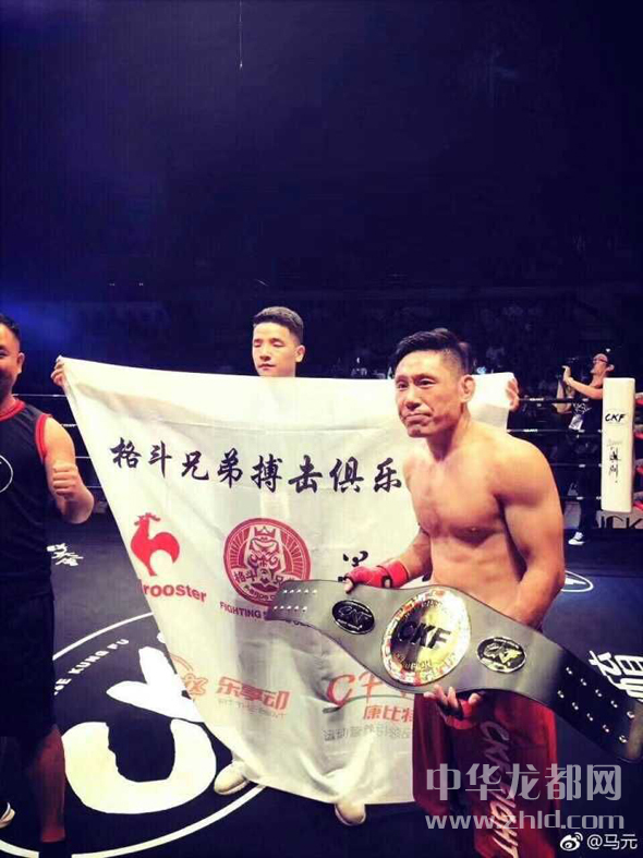 ??? 當日,國內(nèi)格斗圈有名的姚紅剛、姚志奎兄弟第二次聯(lián)袂出陣CKF國際搏擊澳門站比賽,分別爭奪66公斤、61公斤洲際拳王金腰帶。比賽中,姚紅剛面對比自己年輕近十歲、高出自己10厘米的對手,表現(xiàn)沉著冷靜,開局不久抓住機會成功抱倒對手,形成側(cè)控位,在對手起橋逃脫的空擋瞬間轉(zhuǎn)換為騎乘位,此后對手拼盡全力雙手搭扣防止姚紅剛的地面砸拳,但為時已晚,雨點般的拳頭落在了對手身上,對手被迫放棄比賽。第一回合姚紅剛tko對手獲勝,獲得個人第二條洲際綜合格斗金腰帶!
