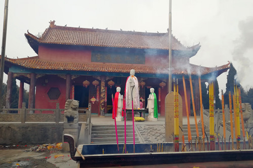 站在殿內(nèi)祭拜的“善童”(民間稱呼,即虔誠(chéng)的香客)張新蘭以她的親身經(jīng)歷印證了趙俊明的話。今年75歲的張新蘭是西華縣紅花鎮(zhèn)人,她經(jīng)常到昆山女?huà)z宮敬奉女?huà)z娘娘。“我記得很清楚,1993年陰歷三月初九昆山女?huà)z宮大殿奠基,當(dāng)天我就在現(xiàn)場(chǎng),我們這些‘善童’都自發(fā)捐物捐錢,我還從家里拿木料過(guò)來(lái)捐到殿里?!睆埿绿m說(shuō)。