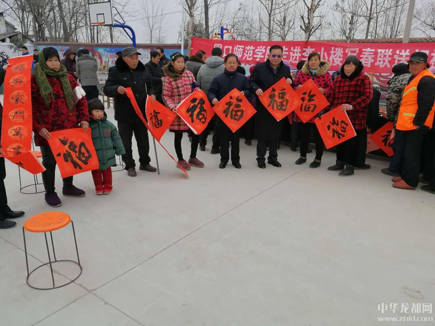 中華龍都網(wǎng)訊(周口報業(yè)全媒體記者 徐松 通訊員 李文明)1月23日,鄲城的氣溫降至零下3℃。周口師范學院黨委副書記楊箴紅、副校長程秀波,帶領學院書法家和藝術團30余名師生,深入鄲城縣李樓鄉(xiāng)李小樓行政村,開展寫春聯(lián)送祝福暨慰問演出活動。精彩紛呈的文藝節(jié)目、火紅的對聯(lián)、真情的慰問讓李小樓數(shù)百群眾忘卻了冬日的寒冷,和慰問團共品“和諧一家親”文化盛宴。鄲城縣人大主任李建軍、工會主席王超以及李樓鄉(xiāng)黨委、政府負責人參加慰問活動。