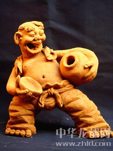 張振福作品中的人物都有一個共同的特點,那就是快樂。他的作品不論男女、不論年齡,張大嘴巴、開懷大笑是人物的共同特征,這也代表他對生活的理解和審美追求。張振福這種放棄追求形似,不是一味地追求逼真,而是追求神似。呈現(xiàn)在收藏者面前的一個個活潑有趣、氣韻生動、形神兼?zhèn)涞娜宋?,還有一個質樸、純凈、快樂的心靈世界和精神世界,這些恰恰是每一個人都心馳神往的“農家樂”。