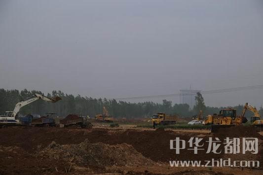 中華龍都網(wǎng)訊(周口報業(yè)全媒體記者 張勁松文/圖)4月21日上午,記者在東新區(qū)引黃調(diào)蓄施工現(xiàn)場了解到,截至目前,該項目已開挖土方79萬立方米,遷墳682座,伐樹21578棵。當(dāng)日上午9時許,記者在施工現(xiàn)場看到,大型挖掘機、翻斗車把挖出的黃土拉向湖岸的位置。推土機轟鳴著在平整場地,酒水車在整個施工現(xiàn)場來回不停地奔跑降塵,整個施工現(xiàn)場60余臺機械來往穿梭,湖的雛形正在形成,湖的面積逐漸“長”大,北岸湖堤也在逐漸隆起。