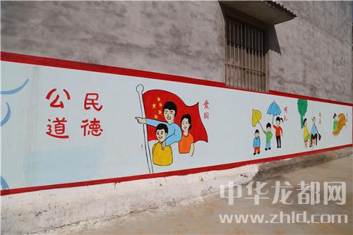 當(dāng)日16時(shí)許,記者在該村看到,干凈整潔的水泥路像玉帶在村中盤旋,街道兩側(cè)栽植不久的小樹在向人們招手,坑塘四周干凈整潔,綠樹環(huán)繞,塘水清澈,梳理有致,房前屋后干凈整潔……天空中雖然下著雨,但是記者遠(yuǎn)遠(yuǎn)的就聽到了群眾的談笑聲和機(jī)械的轟鳴聲,走近,原來(lái)是村民們不顧天氣下雨,依然在自發(fā)地進(jìn)行道路清理工作。記者看到,該村墻體文化更讓村子增加了很多的“內(nèi)涵”。
