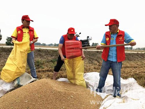 中華龍都網(wǎng)訊(周口報(bào)業(yè)全媒體記者 付永奇 通訊員 高華)6月2日,在商水縣白寺鎮(zhèn)趙金言家的麥田里,一臺大型收割機(jī)正在作業(yè)。中石油周口分公司10多名青年志愿者在麥田里不停的忙碌著,從麥籽出倉到裝袋、裝車,井然有序;中石油周口分公司總經(jīng)理、黨委書記何學(xué)習(xí)為收割機(jī)司機(jī)遞上收割費(fèi)用,并送上汗衫、毛巾、手套等日常用品。