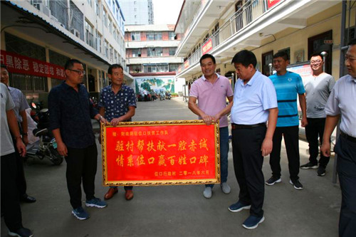 丁喜三代表財(cái)政局黨組對(duì)位口村民為財(cái)政局駐村工作隊(duì)贈(zèng)送錦旗和牌匾表示感謝。稱縣財(cái)政局在縣委縣政府正確領(lǐng)導(dǎo)下,對(duì)張店鎮(zhèn)位口行政村進(jìn)行駐村幫扶,三年來的駐村工作取得了很大的成績(jī),也存在很多不足,希望位口村廣大群眾對(duì)財(cái)政局的駐村扶貧工作多提寶貴意見,同時(shí)對(duì)新駐村隊(duì)員提出高的要求,財(cái)政局和位口村干部群眾攜手共同把脫貧攻堅(jiān)工作做好,確保不拖全縣的后腿,在奔小康的路上不落下一人。