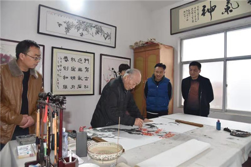 筆墨寫春秋,重彩頌佳節(jié)。為慶祝第19個中國記者節(jié),在扶溝縣的張坡詩詞名人書畫館,來自省書法家協(xié)會的書法家與當(dāng)?shù)匦侣勑麄鞑块T的書畫愛好者們齊聚一堂,以舉行書畫筆會的形式向新聞媒體人慶賀節(jié)日。