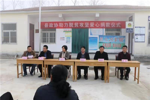 11月13日,在扶溝縣桐丘街道辦事處小胡行政村村委院內(nèi),縣政協(xié)副主席郝寶杰將市、縣政協(xié)委員們捐贈的2萬元錢交到小胡、東五村黨支部書記手中,也將政協(xié)委員對脫貧攻堅事業(yè)的愛心傳導(dǎo)到貧困戶的心中。