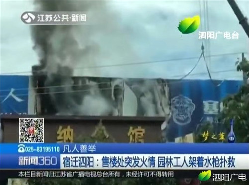 9月5日上午10時許,江蘇省泗陽縣北京東路塞納公館營銷中心因招牌頂部電焊火星濺落,致使門頭起火。起火點距離地面約5米,滅火器等常用滅火設(shè)備無法起作用。為防止意外,售樓處工作人員及時疏散群眾,同時撥打119救火電話。就在此時,身為泗陽縣園林綠化管理處的技術(shù)員曹書志,正開著灑水車進行綠化帶澆水作業(yè),見到路邊濃煙滾滾,火勢兇猛,曹書志二話不說,立刻把灑水車開到著火點,不顧生命危險下車,和其他3名工人,迅速打開前噴水頭和后部水炮供水的副發(fā)動機進行滅火,在持續(xù)噴射十余分鐘后成功將火撲滅。