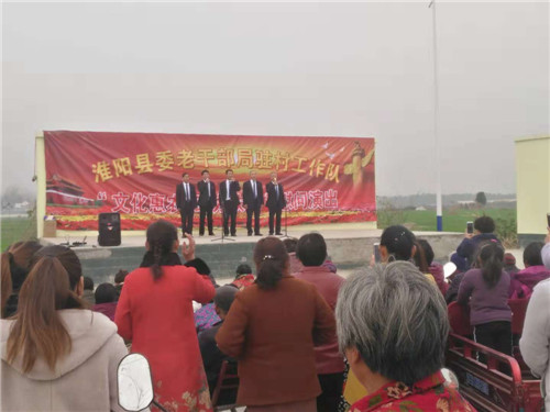 為扎實推進精準扶貧工作,豐富農(nóng)村文化生活,11月27日至11月30日,淮陽縣委老干部局發(fā)揮老干部優(yōu)勢,組織縣老干部藝術(shù)團赴四個幫扶村進行“文化惠農(nóng),助力扶貧”慰問演出,為廣大群眾送上一份豐盛的文化大餐。