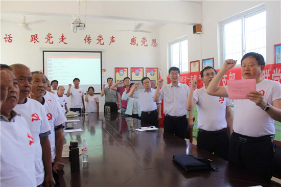 縣教體局黨組書記、局長劉現(xiàn)營,城郊鄉(xiāng)鄉(xiāng)長王忠,縣教體局機(jī)關(guān)一支部書記、主任科員張本寶,城郊鄉(xiāng)副鄉(xiāng)長晉惠萍等帶領(lǐng)與會(huì)黨員舉起右拳,挺起胸膛,莊嚴(yán)宣誓,重溫了入黨誓詞。