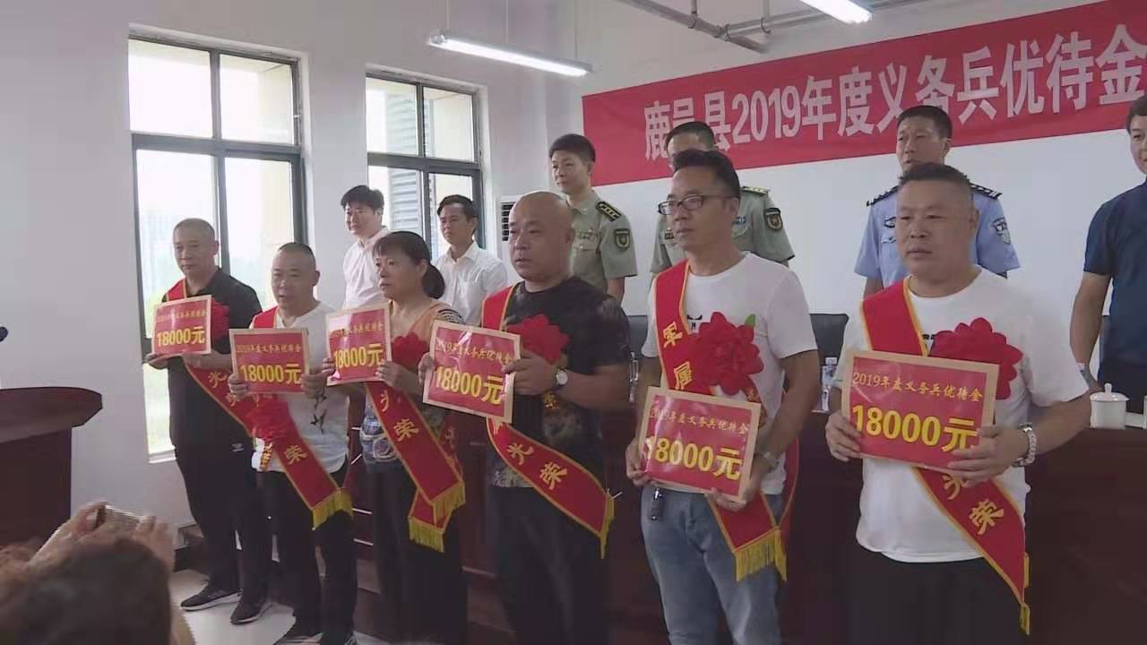 7月24日,鹿邑縣2019年義務兵優(yōu)待金發(fā)放儀式舉行??h委常委、武裝部政委杜寶森,縣人武部部長陳巍,縣政府副縣長、公安局局長任金瑞出席發(fā)放儀式,并為12名義務兵家屬代表發(fā)放了優(yōu)待金。