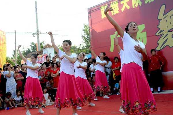 為了把節(jié)目辦的出彩,村民們非常認(rèn)真,不僅動員老少婦女們參與排練,晚上吃過飯在村邊一遍遍的練,直到能熟練上場,另外,他們還請來劇團(tuán)的演員當(dāng)評委,每場精彩的演出,博得大伙叫好聲。評委也被邀上臺 ,臨場助興,多才多藝的村民也見縫插針地表演一番才藝,一場村頭廣場舞大賽有聲有色,笑聲連連,展示了農(nóng)民在奔小康道路上的自信、幸福和執(zhí)著。