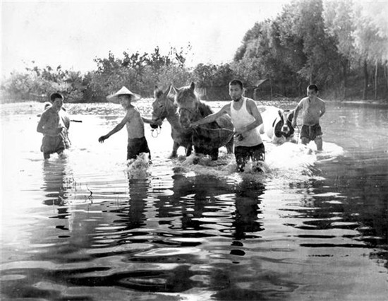 “75·8”大洪水西華、項(xiàng)城受災(zāi)最為嚴(yán)重,災(zāi)區(qū)的村民把牲畜趕到大堤上。(圖片來(lái)源:劉明和)