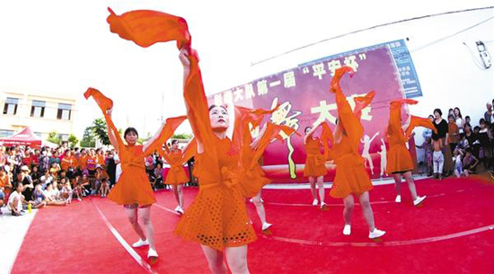 8月25日下午,市城鄉(xiāng)一體化示范區(qū)許灣鄉(xiāng)彭樓行政村文化廣場(chǎng),舞姿婀娜,鼓聲雷鳴,笑語盈盈,該村千名農(nóng)民以廣場(chǎng)舞大賽的形式,喜迎新中國(guó)70華誕和即將到來的中國(guó)農(nóng)民豐收節(jié)。記者 梁照曾 攝