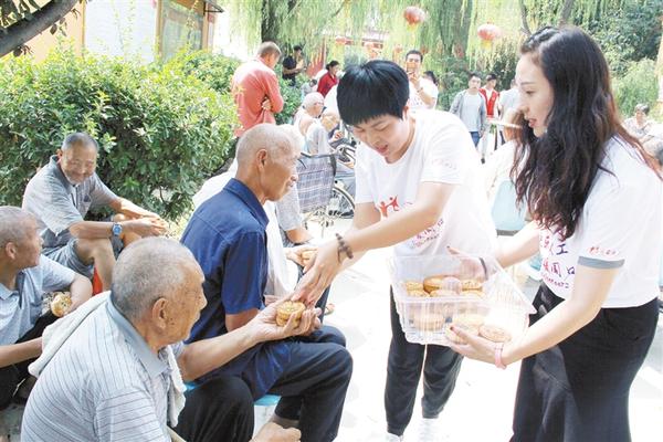 9月7日上午,周口市社工義工聯(lián)合會組織10多名志愿者,帶著月餅、牛奶、水果等來到商水縣平店鄉(xiāng)敬老院,為生活在這里的老人提前過中秋節(jié)。