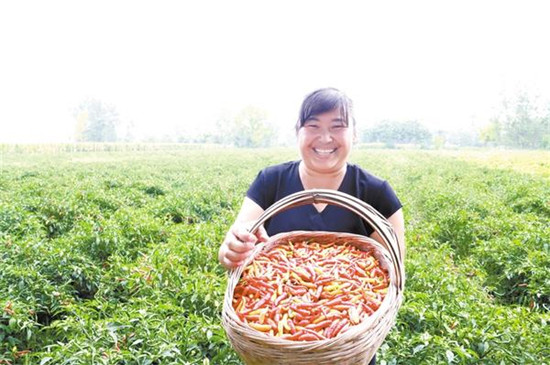 看著剛采摘的辣椒,王麗臉上露出燦爛的笑容
