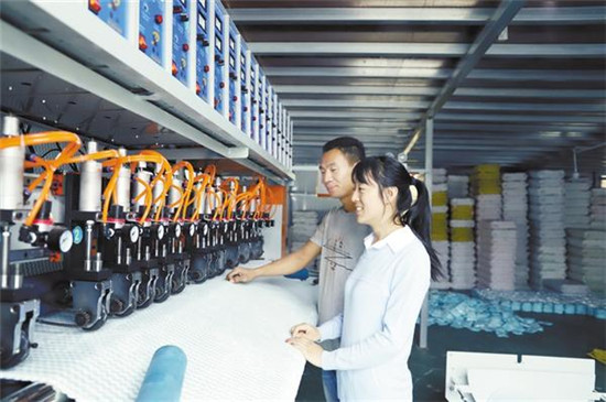 圖為10月18日,朱高偉夫妻倆在扶貧車(chē)間查看機(jī)器運(yùn)行情況。