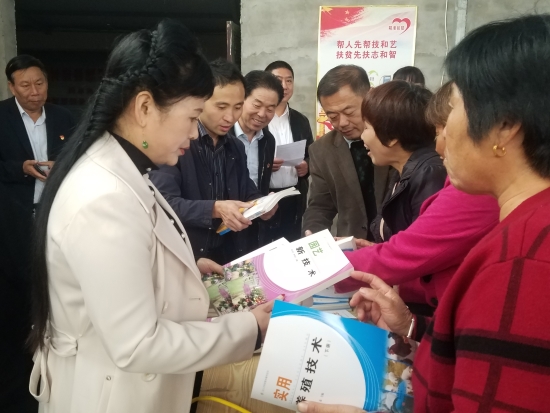 當(dāng)天,淮陽縣職業(yè)中專正在借助河南省科技特派員科技專項扶貧平臺,組織豆門鄉(xiāng)紅山村百余名建檔立卡貧困戶學(xué)員進行為期15天的高效種植、健康養(yǎng)殖技術(shù)培訓(xùn)。在河南省科技特派員、周口職業(yè)技術(shù)學(xué)院趙慶楓博士的引薦下,民盟周口市委的楊彥濤委員、三支部主委王春華、文化教育支部主委任東升趕到現(xiàn)場為大家“傳經(jīng)送寶”。從種植增收致富到養(yǎng)殖奔小康,從關(guān)鍵技術(shù)到惠農(nóng)政策,從園林園藝技術(shù)到農(nóng)產(chǎn)品的銷售,專家們講得用心,學(xué)員們聽得認真。