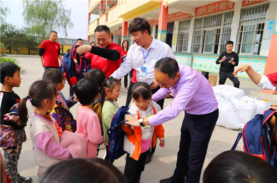當(dāng)日上午,周大福集團(tuán)組織了15名員工組成義工隊(duì),在周口區(qū)域負(fù)責(zé)人王保安的陪同下,帶著總價值3萬余元的300套愛心物資,送到學(xué)生手中。現(xiàn)場,他們與學(xué)生愛心互動、親切交流,為學(xué)生們背上書包、送上文具,關(guān)心學(xué)生生活和學(xué)習(xí)情況。當(dāng)了解到學(xué)校資金緊張,師生還沒有統(tǒng)一服裝時。岳磊等人表示,將向上級申請,下一步積極為該校師生解決工作裝和校服問題。對此,徐莊小學(xué)師生熱烈鼓掌表示感謝。