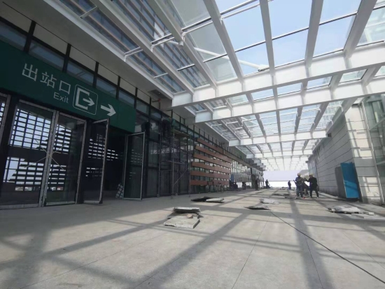 經(jīng)過檢票機安檢通道,乘電梯或步梯通往站臺。該站站場設(shè)2臺4條(含正線2條),設(shè)基本站臺、側(cè)式站臺各1座,站臺最高聚集人數(shù)為600人。
