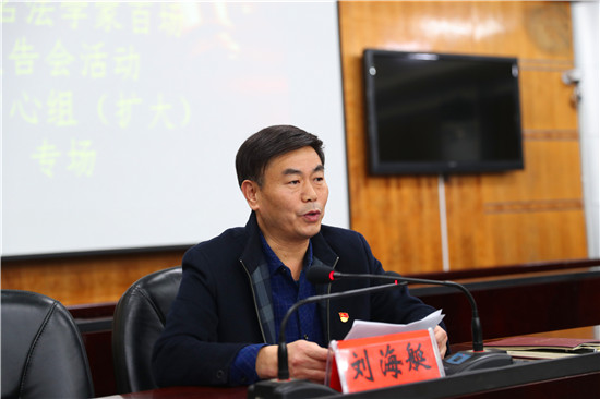 11月26日晚,太康縣在縣委綜合樓召開縣委理論學習中心組(擴大)“不忘初心、牢記使命”主題教育夜校法治宣講活動專場報告會。河南工業(yè)大學法學院教授、博士生導師譚波作《依法治縣與法治太康建設》專題講座??h委副書記、縣委政法委書記劉海艇主持會議。縣副處級以上領導干部,縣直各單位黨政正職,縣委各部委辦副職,各鄉(xiāng)鎮(zhèn)鄉(xiāng)鎮(zhèn)長,人大、政協(xié)機關各委室主任、副主任共100余人參加會議。
