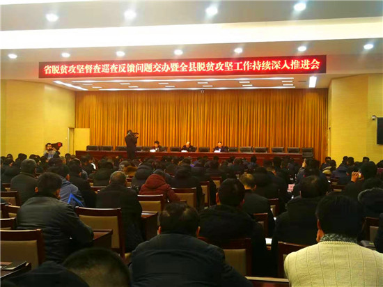 1月3日,扶溝縣召開(kāi)省脫貧攻堅(jiān)督查巡查問(wèn)題交辦暨全縣脫貧攻堅(jiān)工作推進(jìn)會(huì)??h委副書記、縣政法委書記詹凱主持會(huì)議??h委常委、縣政府黨組成員段然,縣委常委、副縣長(zhǎng)趙紅亮出席會(huì)議??h直各單位一把手、相關(guān)行業(yè)部門分管扶貧工作的副職,各鄉(xiāng)鎮(zhèn)(街道)黨(工)委書記、分管扶貧工作的副職、扶貧辦主任,81個(gè)貧困村的黨支部書記、駐村第一書記參加會(huì)議。