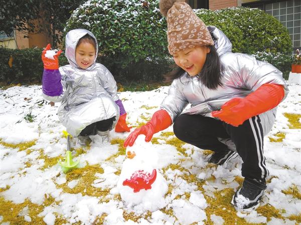 1月7日,在周口中心城區(qū)一小區(qū)內,孩子們或打雪仗,或堆雪人,盡情享受著初雪帶來的歡樂。 記者 孫安平 攝