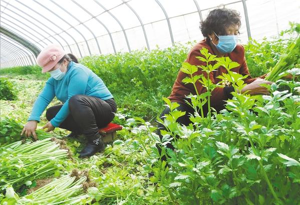 昨日,在沈丘縣周營鎮(zhèn)豫東惠農(nóng)家庭農(nóng)場大棚蔬菜種植基地,村民正忙著采收訂單生態(tài)芹菜。近期來,沈丘縣在抓好疫情防控的同時,出臺系列扶持政策,促進(jìn)現(xiàn)代設(shè)施農(nóng)業(yè)有序恢復(fù)生產(chǎn),帶動當(dāng)?shù)刎毨Т迕窬徒鼊?wù)工增收致富。