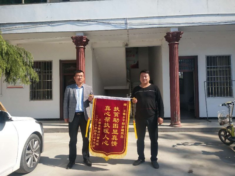 “扶貧助困顯真情,真心幫扶暖人心!”4月26日,太康縣王集鄉(xiāng)前進村未脫貧戶董紅偉將這面錦旗送到幫扶人李超手中?!八蜕线@面錦旗,終于了卻了我的一個心愿,真是非常感謝李超同志,不辭勞苦,多次到我家進行幫扶,這不,又幫我介紹了一份工作,今年我脫貧沒任何問題了!”董紅偉笑著說。