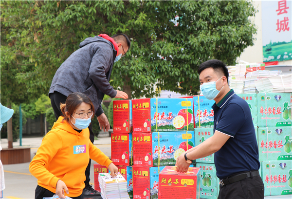 不久,一輛小貨車駛?cè)雽嶒炐W院內(nèi),滿載著水果、毛巾、酒精、消毒液、洗手液和圖書等物資,總計價值兩萬余元。吳玲玲跳下車,向迎上來的韓濤簡單地打了招呼,便和學校工作人員一起把水果等物資卸載搬運。