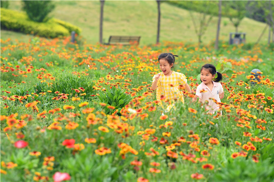 5月17日,市民徜徉在東方園林的花海中,暢享休閑樂趣。近期,位于沙潁河南岸的東方園林內(nèi),成片的天人菊等花卉相繼盛開,猶如五彩的花海,不少市民來些游玩、拍照。