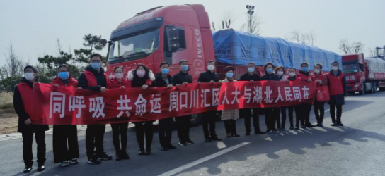 “萬(wàn)眾一心,共抗疫情,周口人民與湖北人民并肩作戰(zhàn)!”2月29日10時(shí),6輛懸掛著紅色條幅的卡車(chē),滿(mǎn)載100噸新鮮蔬菜在周口北高速口集合后,踏上了馳援湖北孝感的征程,單慶峰專(zhuān)門(mén)趕到現(xiàn)場(chǎng)為車(chē)隊(duì)送行。