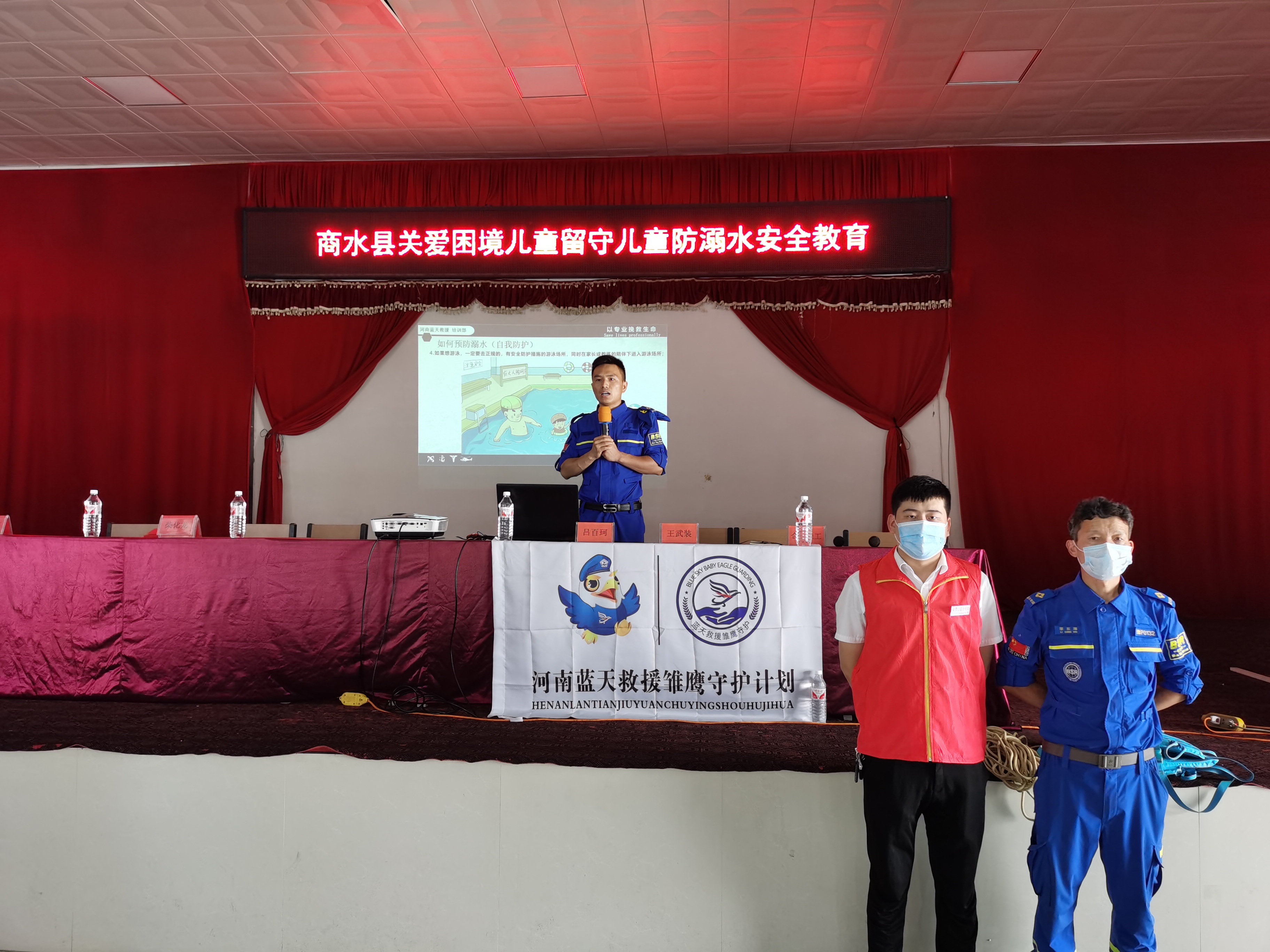 活動現(xiàn)場,專業(yè)的社工和商水縣藍天救援隊為學生開展了45分鐘的防溺水課,救援隊員結合視頻講解和現(xiàn)場實操演練向學生宣傳防溺水知識,并向學生派發(fā)了防溺水知識宣傳單。在問答環(huán)節(jié)中,學生們積極回答各種防溺水知識問題。最后,在社工的帶領下,學生們齊聲朗讀防溺水安全“六不準”。 五二班學生賈家豪提到這次宣講活動說,“通過這次學習我認識到在河邊戲水是很危險的事情,以后我再也不去河溝邊玩了。”