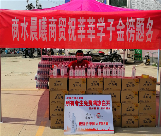 在商水二高考點(diǎn)附近,該公司負(fù)責(zé)人袁紅亮表示,今年的高考遭遇疫情、高溫,非常特殊,作為民營企業(yè),我們?cè)笧榭忌鸵黄瑦坌?,送一絲清涼,幫助他們渡過這個(gè)難忘的高考。