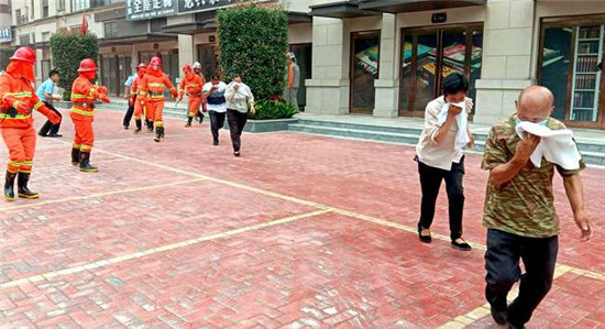上午9時,演練按照程序正式拉開帷幕。消防救援大隊首先向物業(yè)、居民講解了開展此次消防安全演練的目的和意義并對小區(qū)常見的安全突發(fā)事故進行舉例說明。演練開始后,物業(yè)保安人員通過模擬1號樓1單元6樓東戶家里發(fā)現(xiàn)火災,有人員被困情況。物業(yè)負責人接到保安人員匯報情況后,立即撥打“119”報警電話,并命令物業(yè)工作人員立即按照預案組織疏散組、滅火組、警戒組、醫(yī)療組。疏散組組織被困人員緊急疏散,滅火組立即組織火災初期滅火,控制火情蔓延,并等待增援。各救援隊到場后,分別組成偵查、滅火、供水、搜救等專業(yè)小組,按照救人第一的指導思想,第一時間深入火場搜尋和搶救被困人員,積極實施火災撲救,整個演練過程緊張有序,計劃嚴密,各作戰(zhàn)小組有條不紊地開展,圓滿完成了此次滅火救援任務。