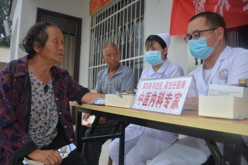 9時許,偌大的村委大院人來人往、熱鬧非凡。一些群眾騎著兩輪車、三輪車、自行車,有的坐著輪椅、拄著拐杖陸陸續(xù)續(xù)從四面八方趕了過來。中醫(yī)師們擺開自己的“攤位”迫不及待地為村民進行把脈、針灸、開方、拿藥、測血壓等各種診療服務(wù)……