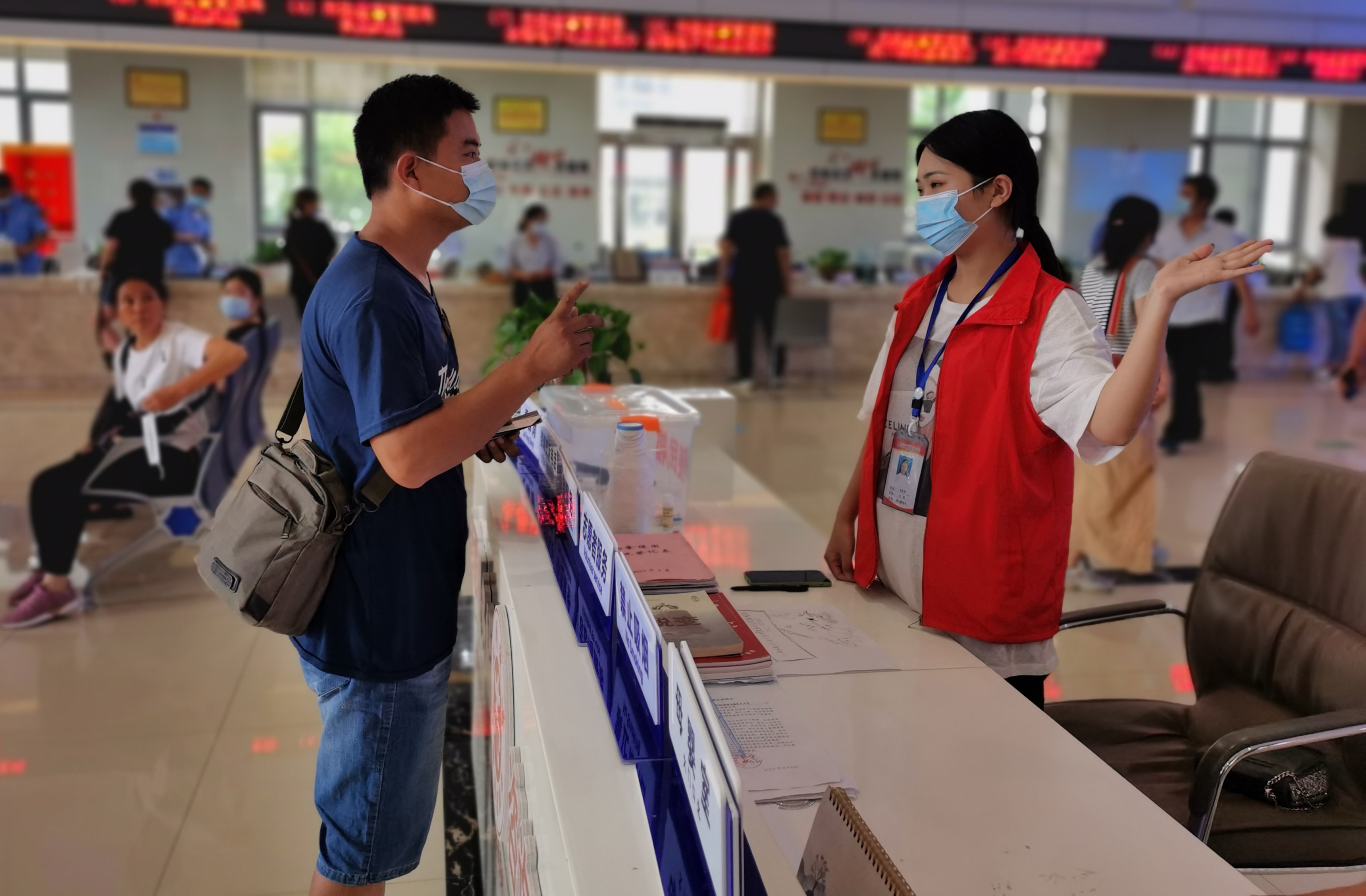 市民在向周口市行政服務(wù)中心大廳的志愿咨詢問(wèn)題