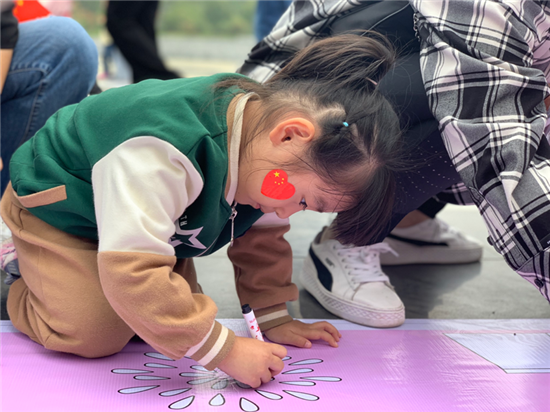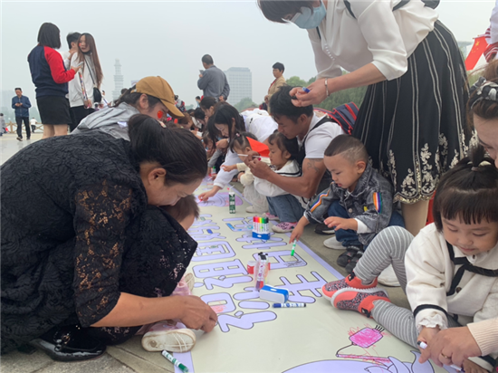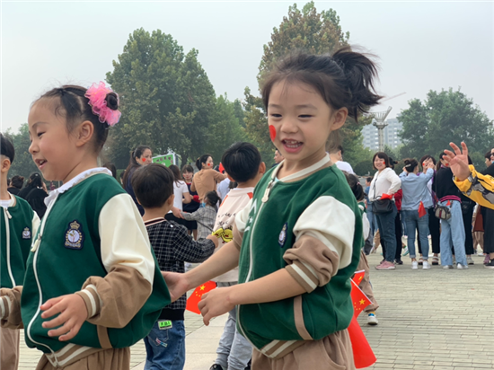 9月30日上午,在周口公園里,一群幼兒園的小朋友通過(guò)做游戲,涂畫(huà)卷等活動(dòng)歡度國(guó)慶節(jié)。②9