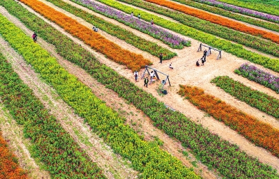 二○一八年以來(lái),我省共創(chuàng)建224個(gè)“美麗小鎮(zhèn)”3388個(gè)“四美鄉(xiāng)村”94.6萬(wàn)個(gè)“五美庭院” “十一”假期,游客在寧陵縣邏崗鎮(zhèn)黃老家村花海中賞花。該村打造生態(tài)花田小鎮(zhèn),吸引了眾多游客前來(lái)拍照游玩,有力提高了當(dāng)?shù)卮迕袷杖?。呂忠箱攝 |